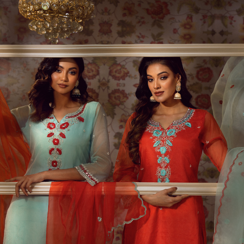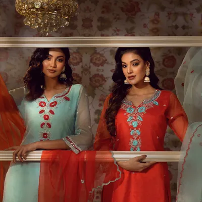 Dive into the festive spirit with a stunning array of colors. This collection is a testament to the artistry and craftsmanship that define the spirit of Eid. Immerse yourself in the rich tapestry of luxurious fabrics, intricate embellishments, and exquisite details that adorn these creations, meticulously designed to capture the essence of celebrations.